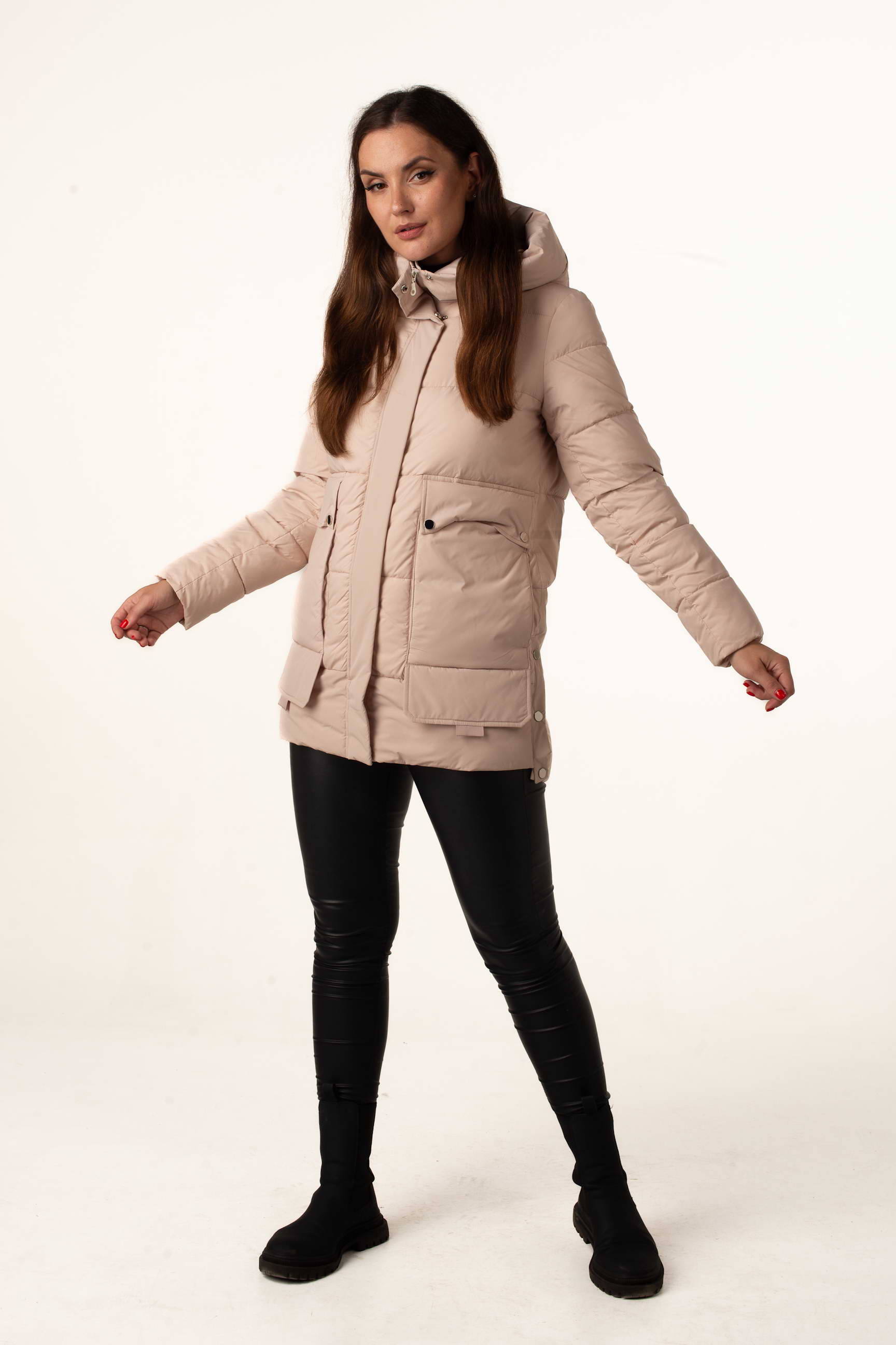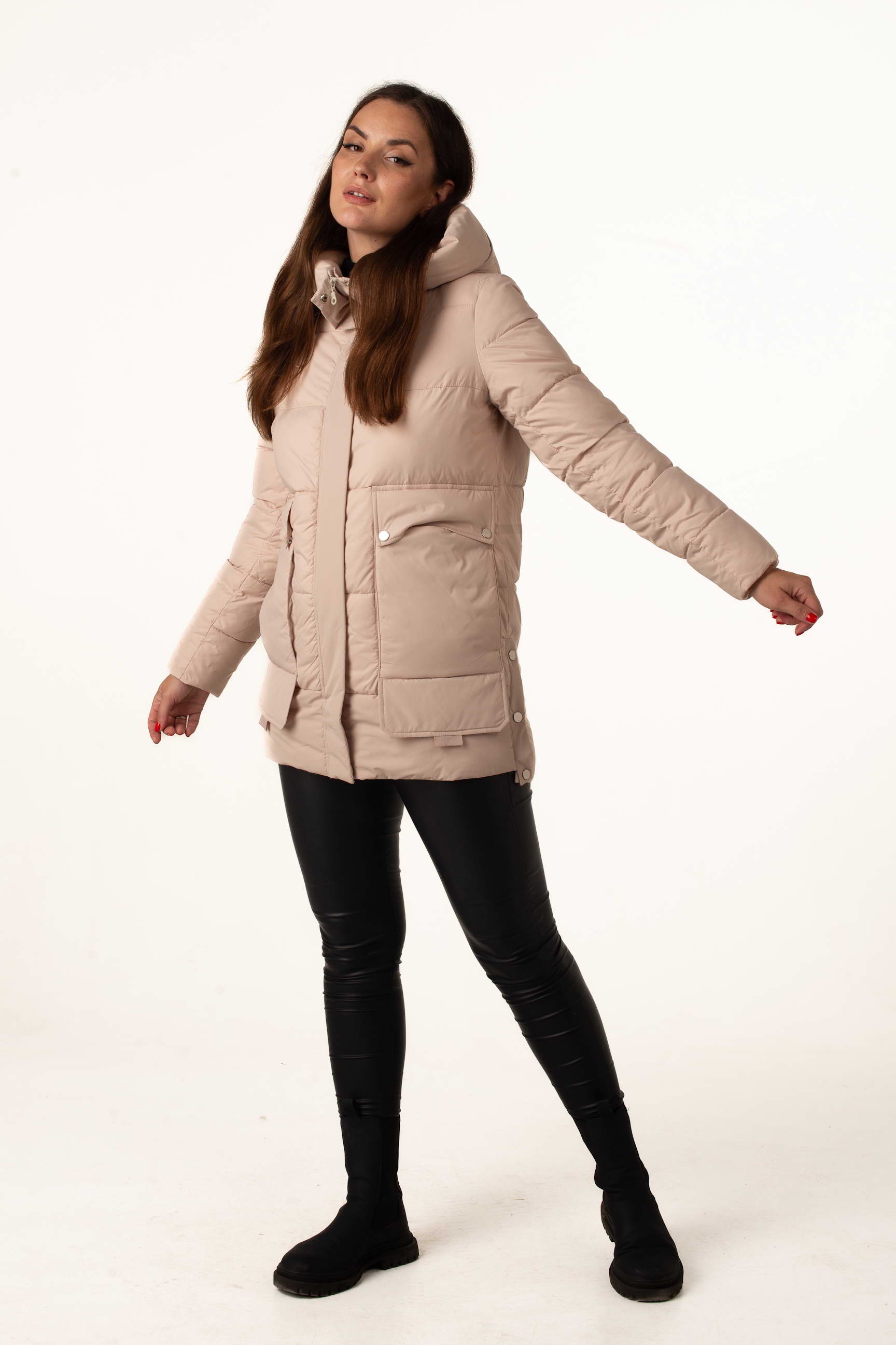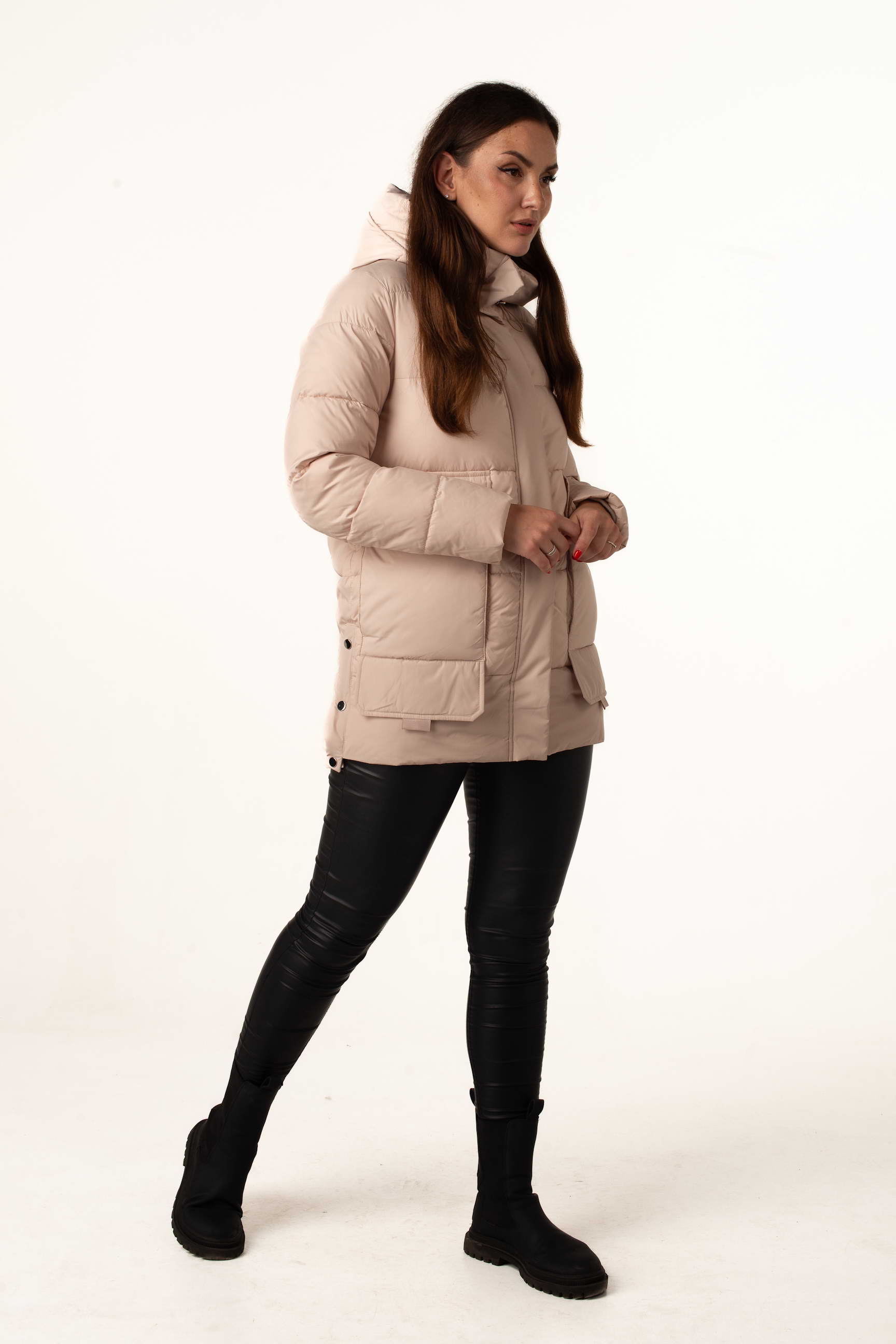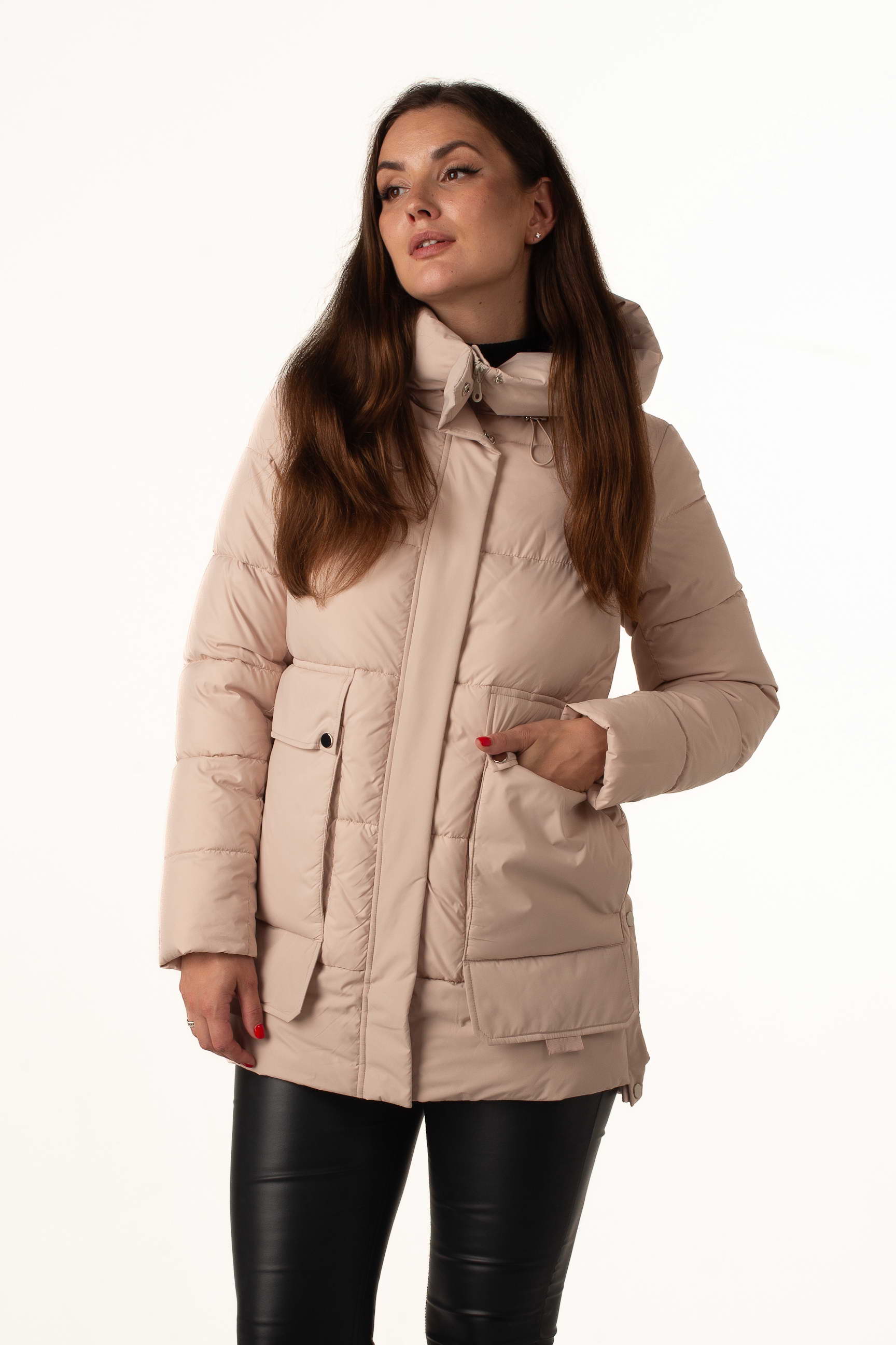 Біопуховик бежевого кольору поєднує стиль і функціональність, легкий і теплий, підкреслює індивідуальний стиль і створює комфорт у зимову пору.