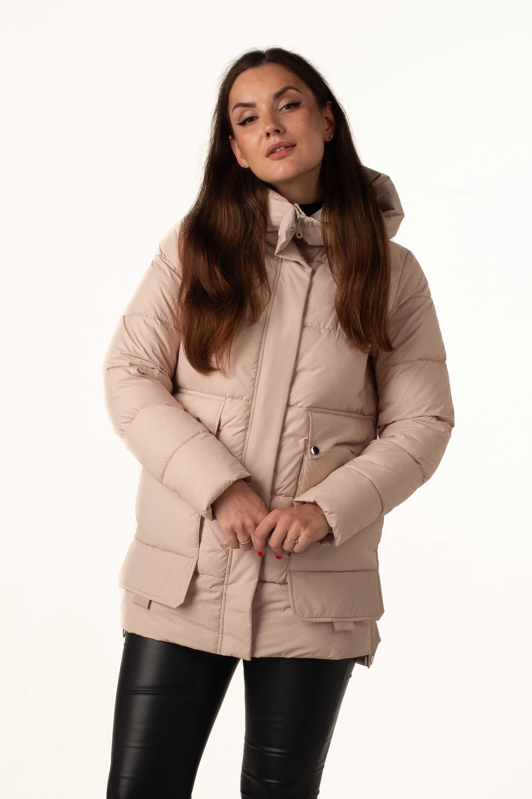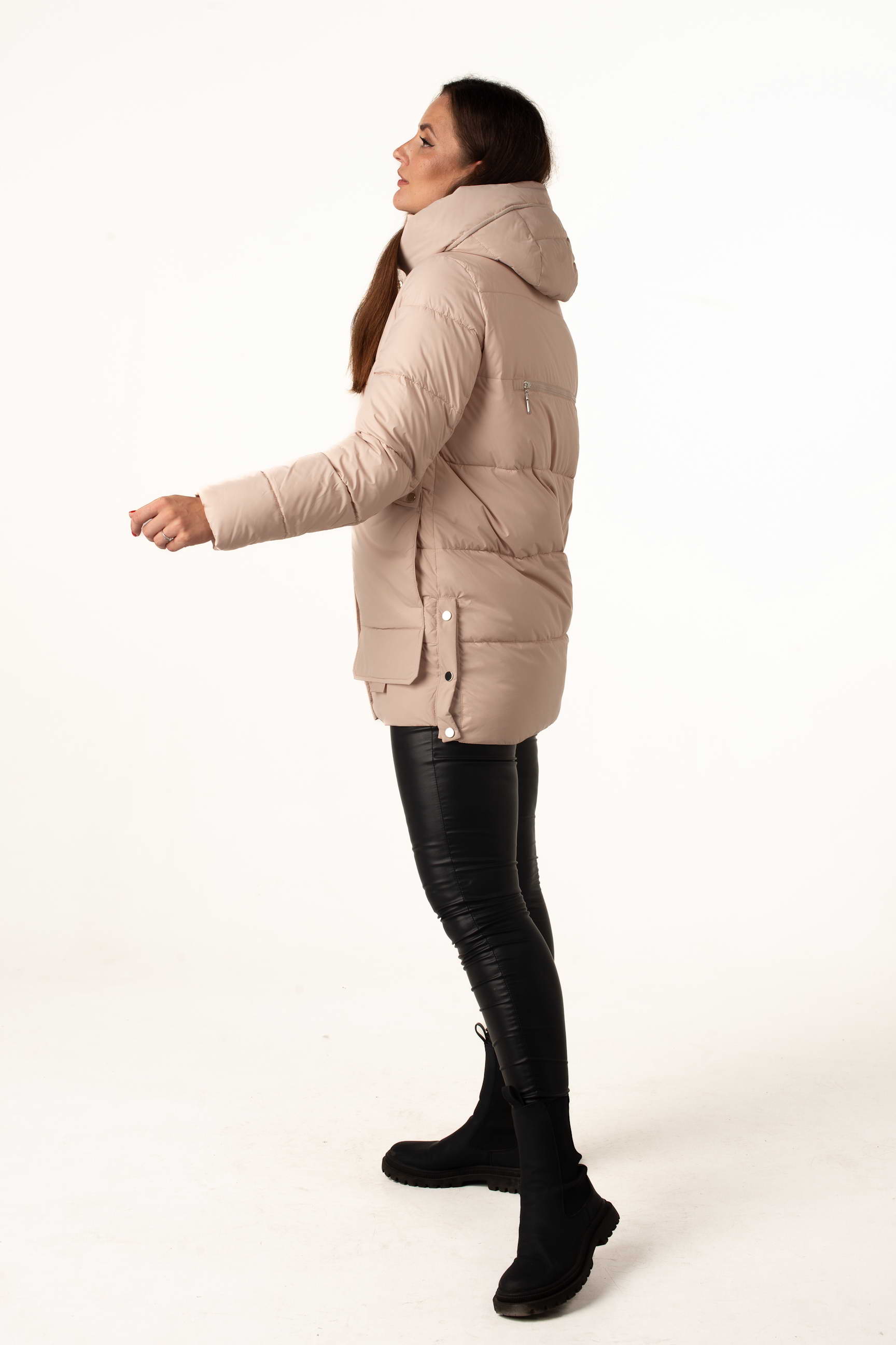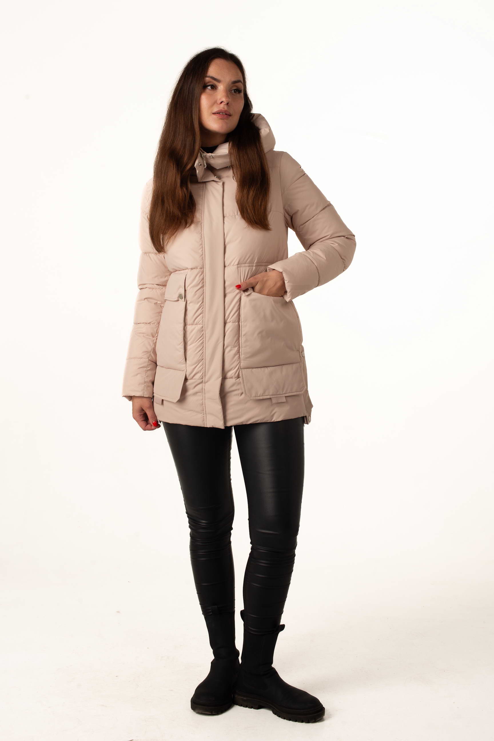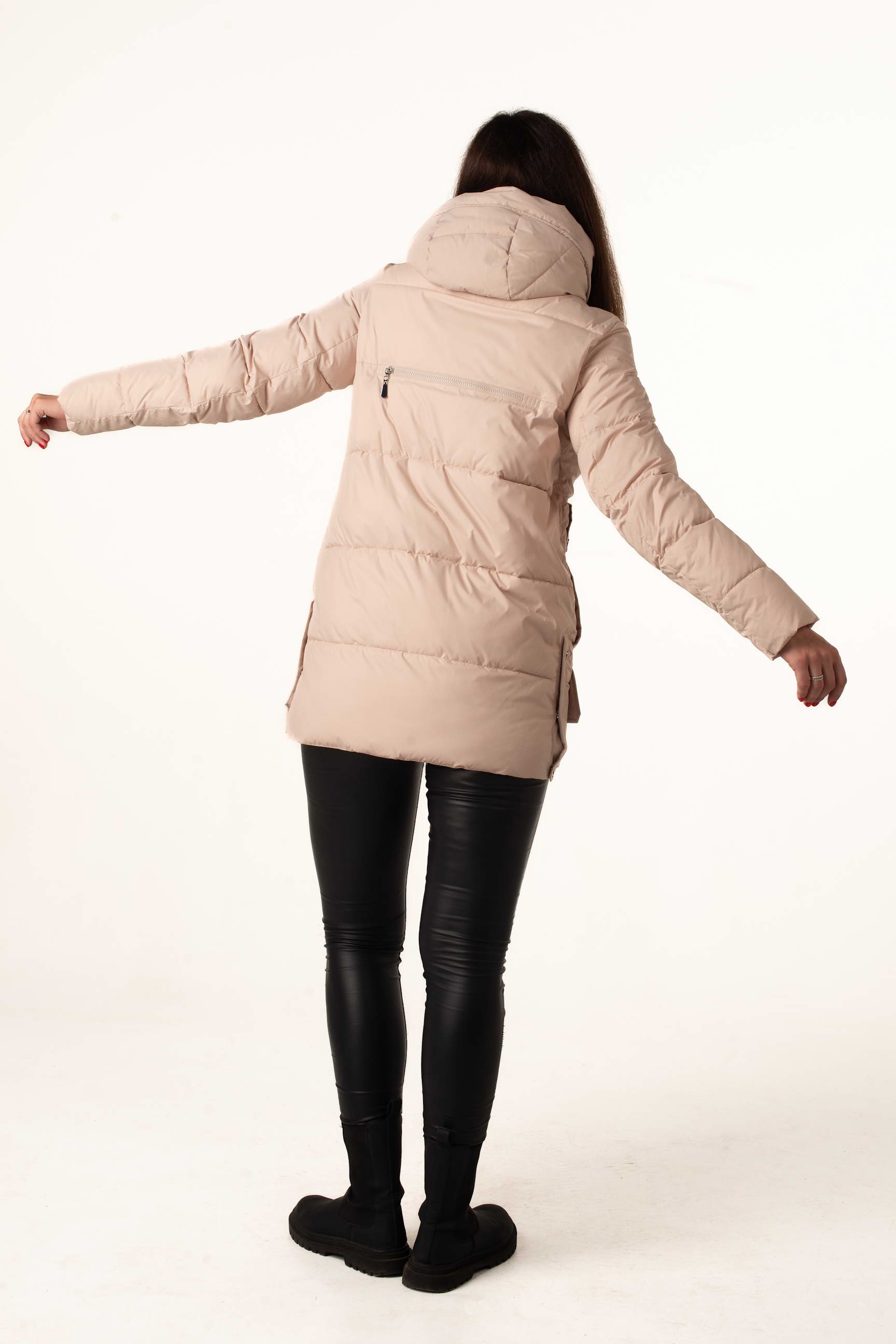 Біопуховик бежевого кольору поєднує стиль і функціональність, легкий і теплий, підкреслює індивідуальний стиль і створює комфорт у зимову пору.