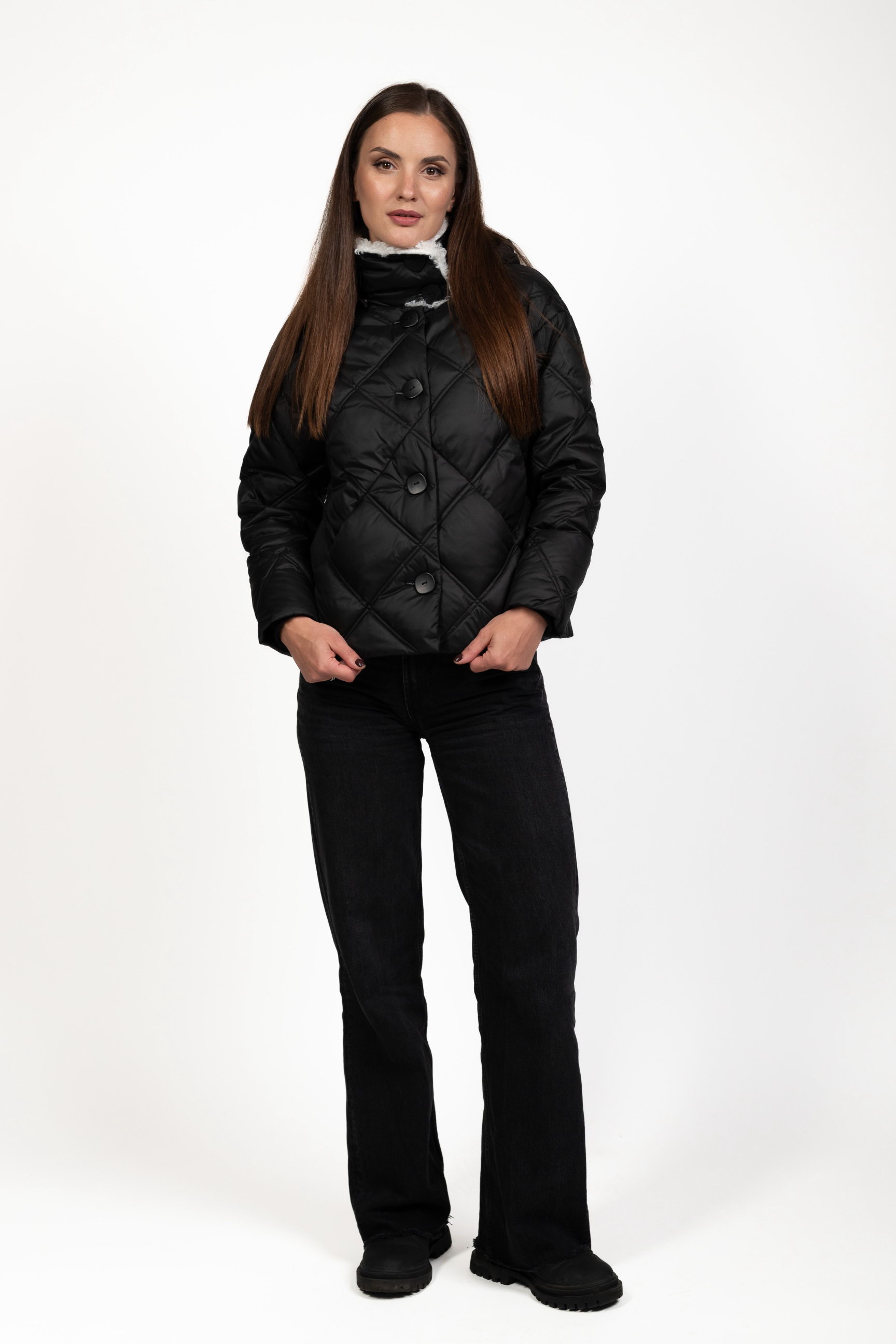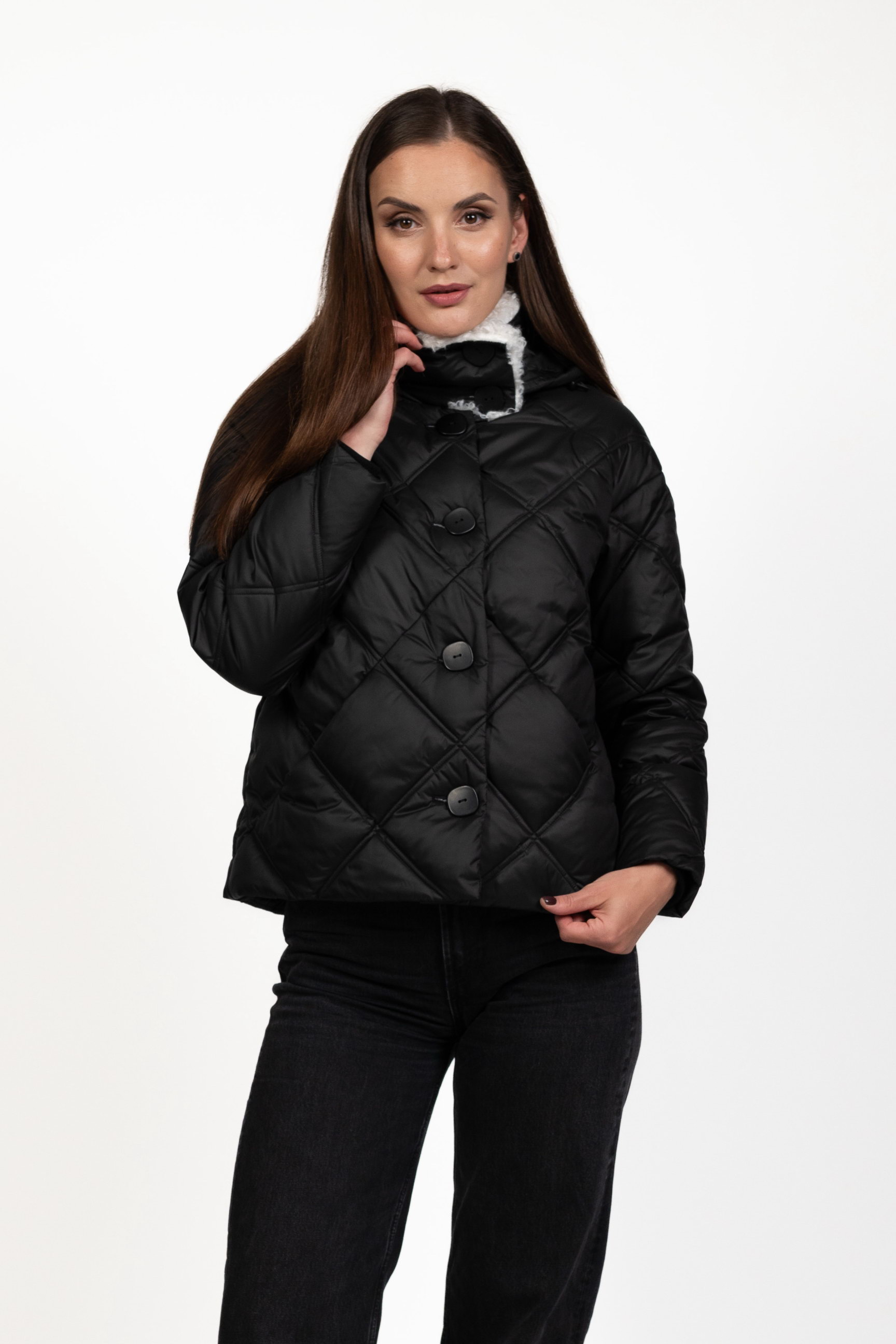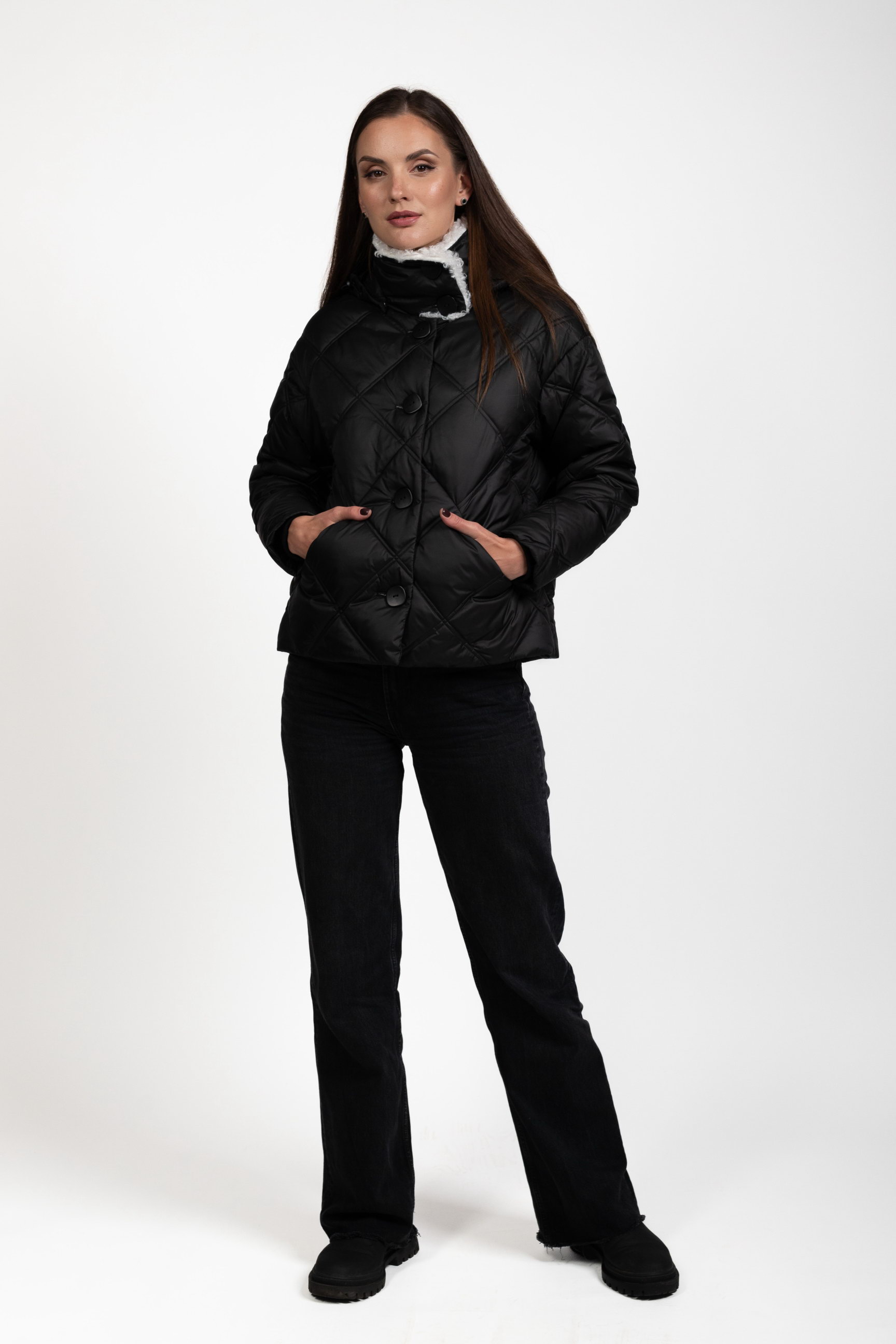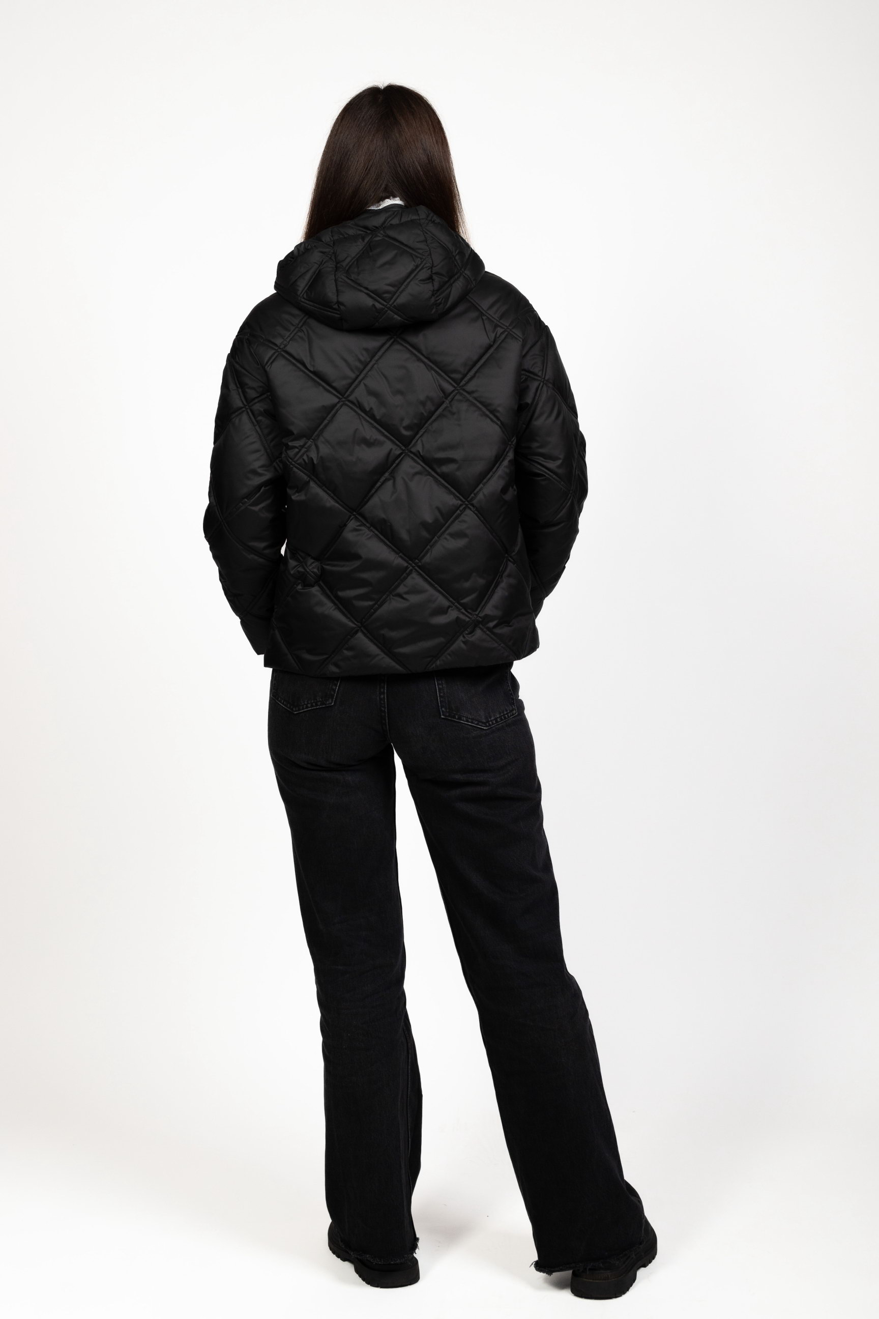 Стьобаний ромбами — модний і сучасний акцент, який підкреслює структуру та стиль пуховика, роблячи його вигляд преміальним.