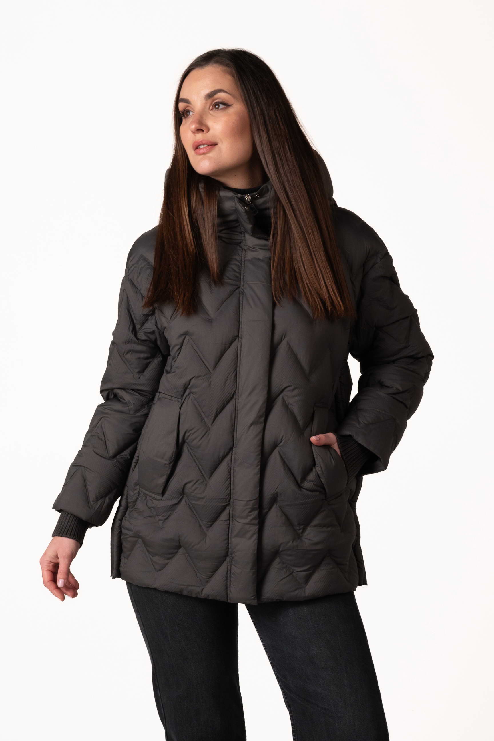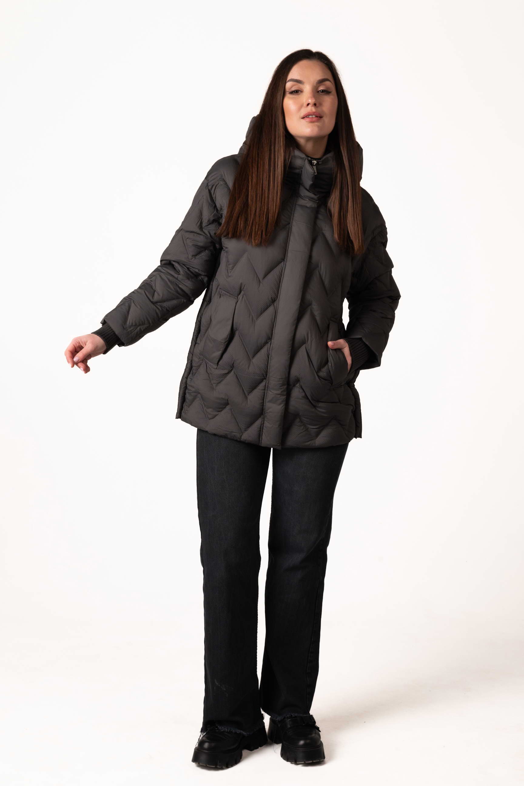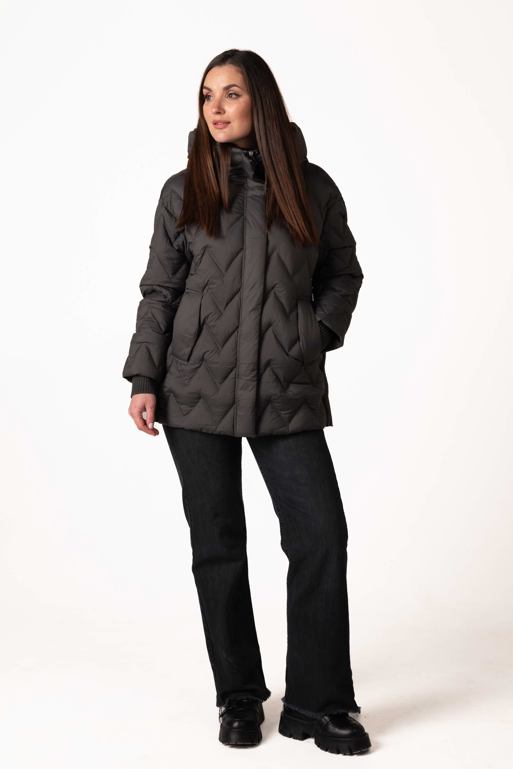 Оригінальна зігзагоподібна прострочка додає моделі динамічності та сучасного характеру, водночас рівномірно розподіляючи наповнювач по всій поверхні пуховика.