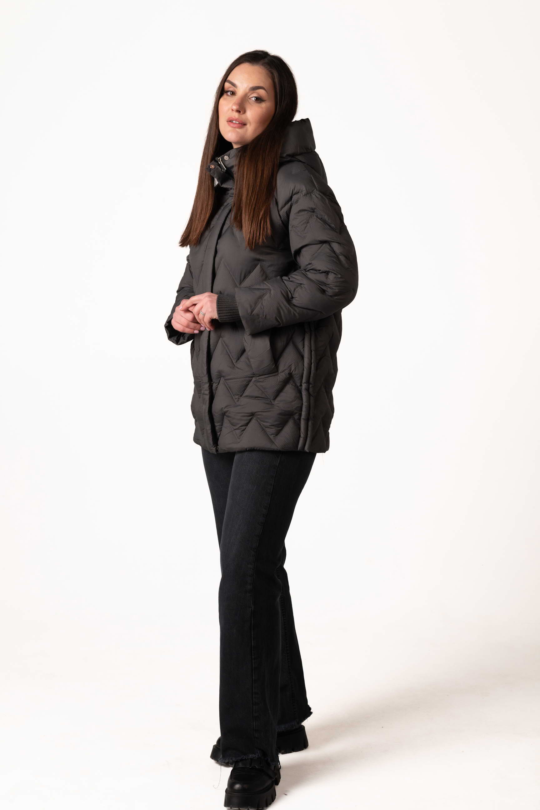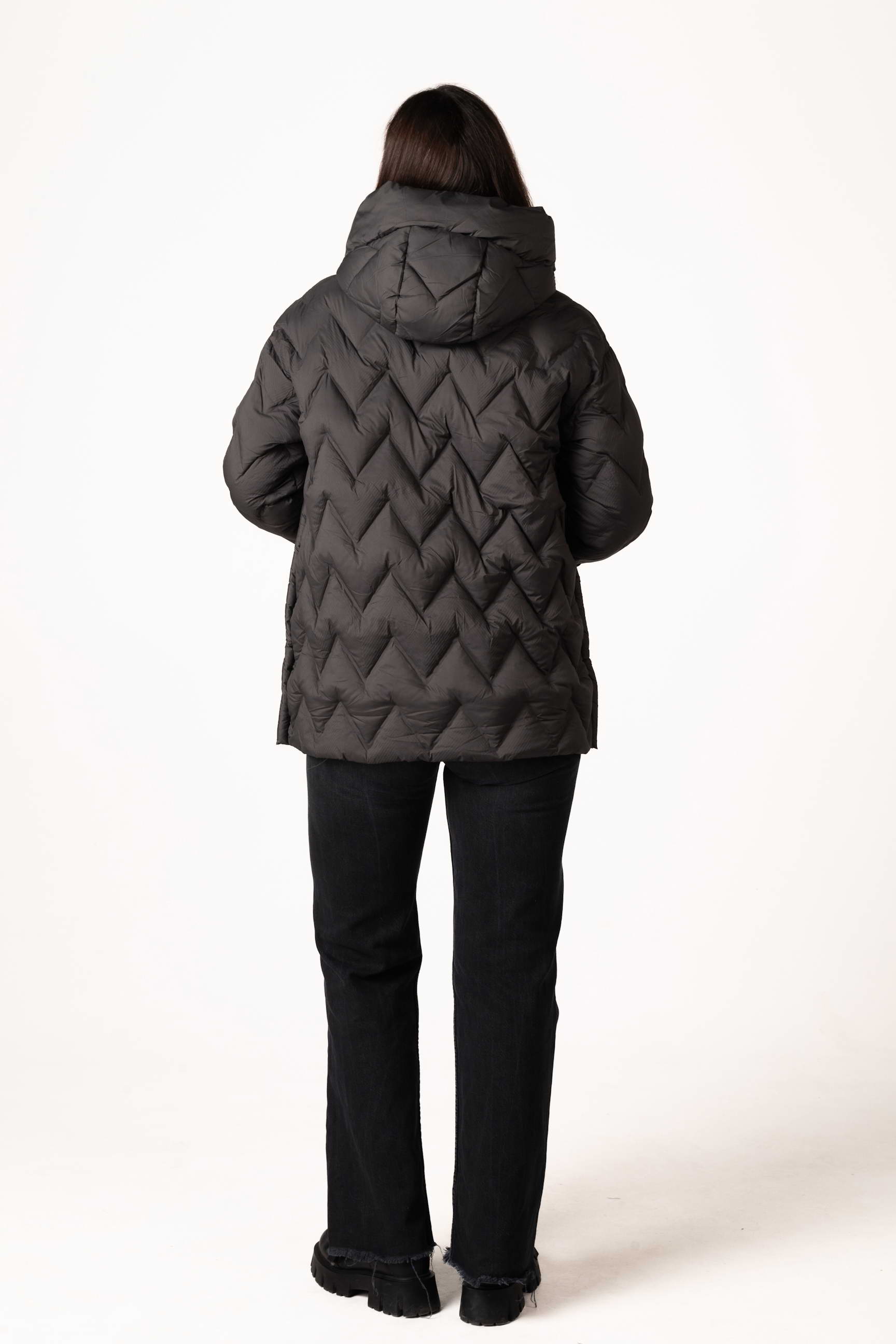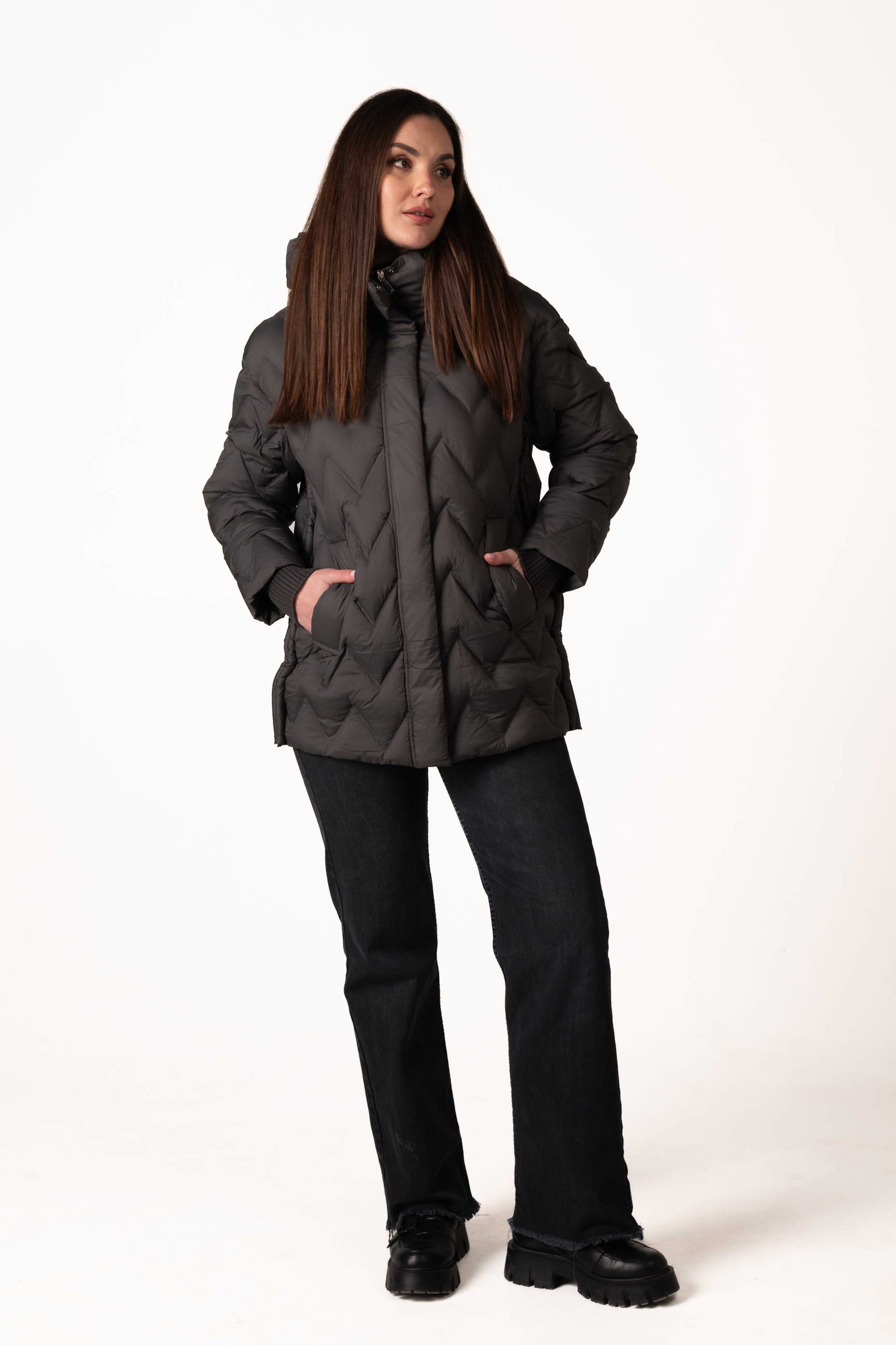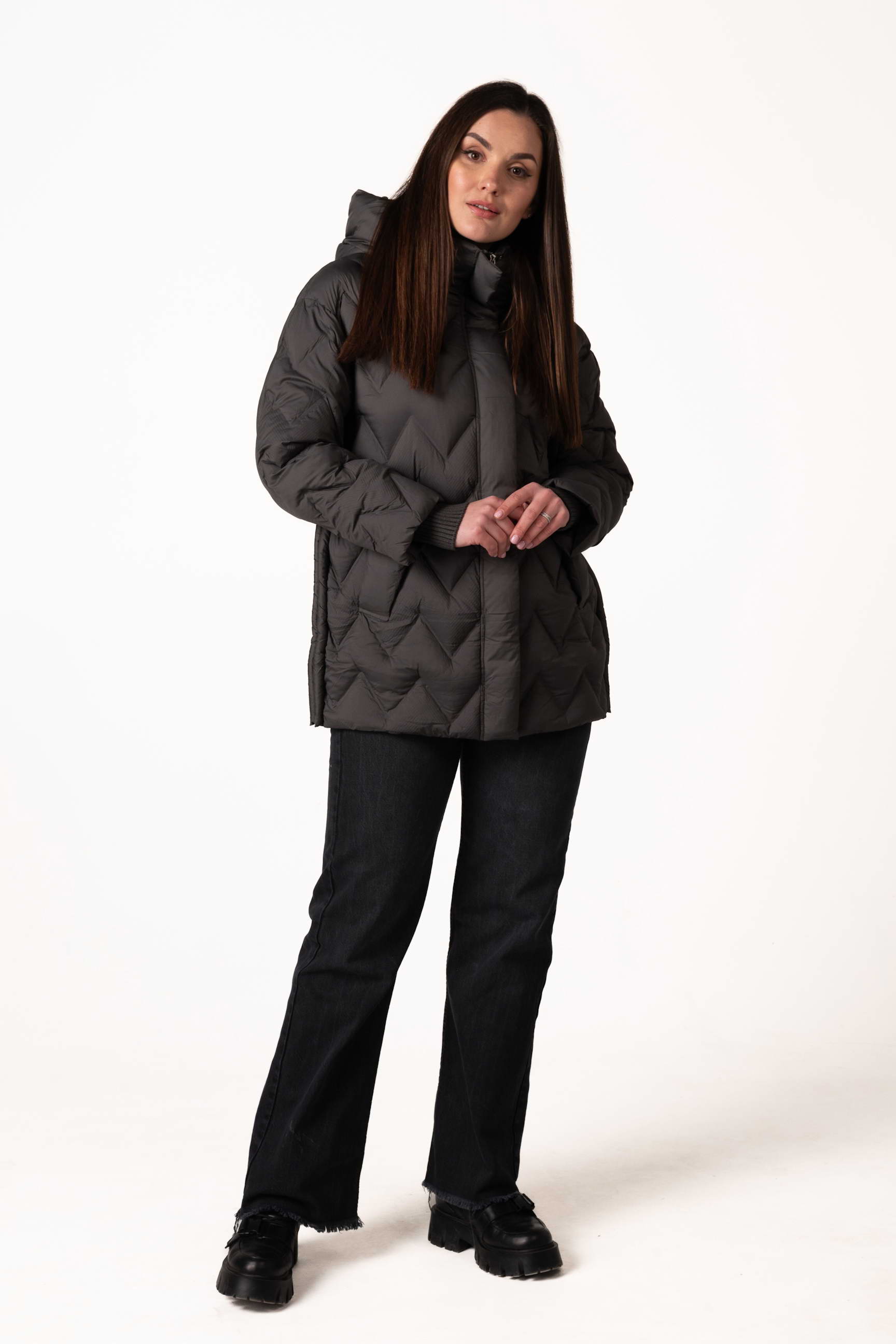 Оригінальна зігзагоподібна прострочка додає моделі динамічності та сучасного характеру, водночас рівномірно розподіляючи наповнювач по всій поверхні пуховика.