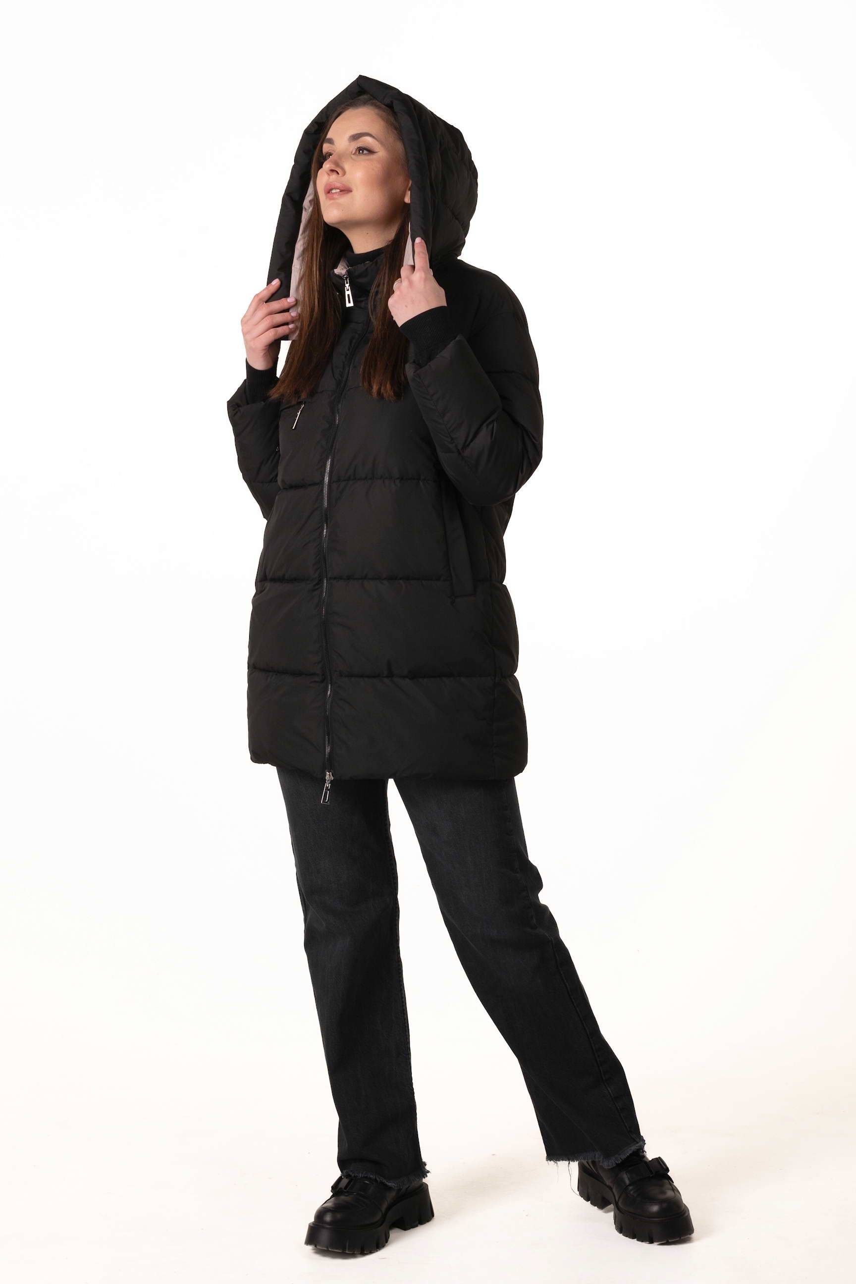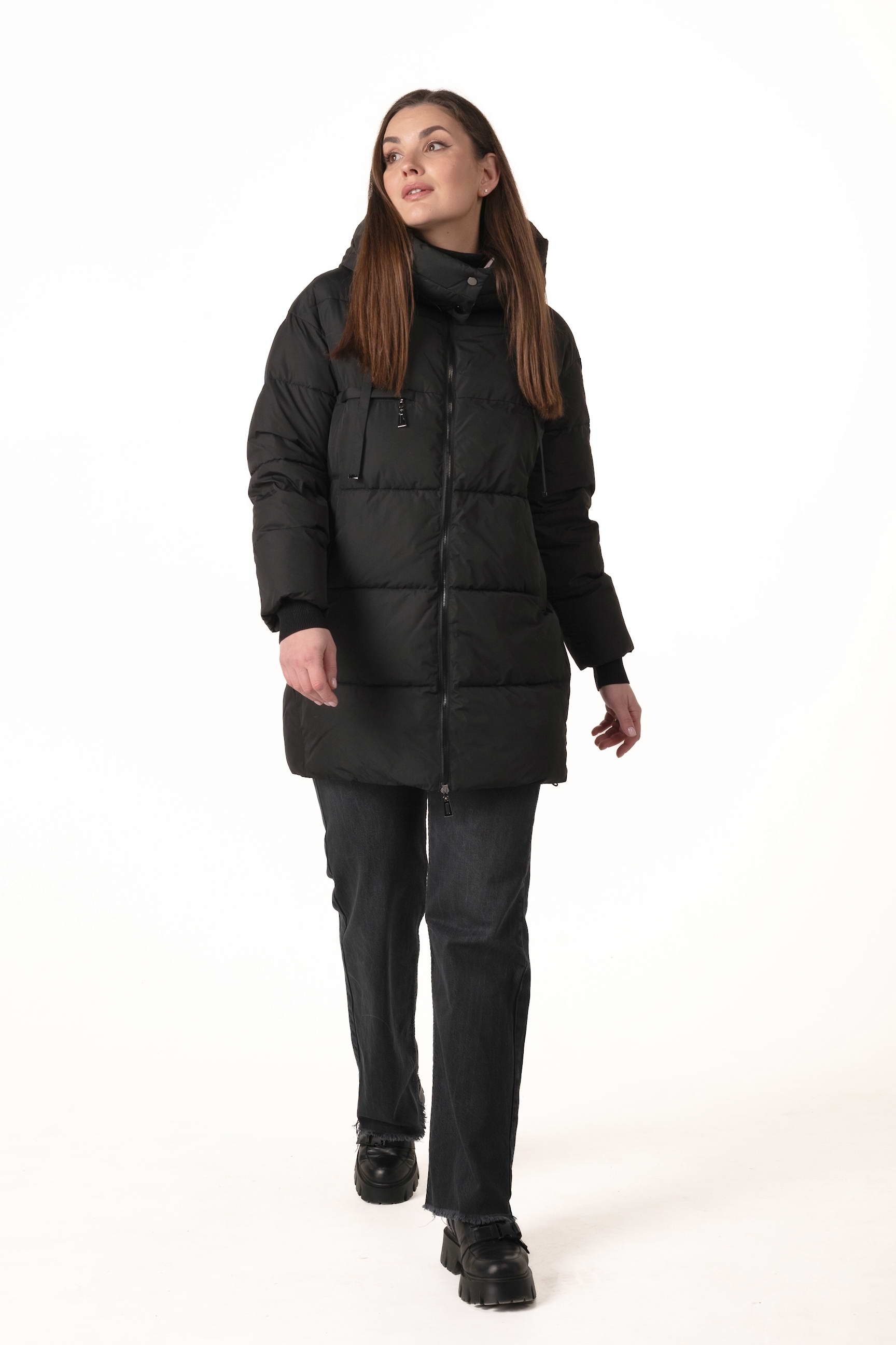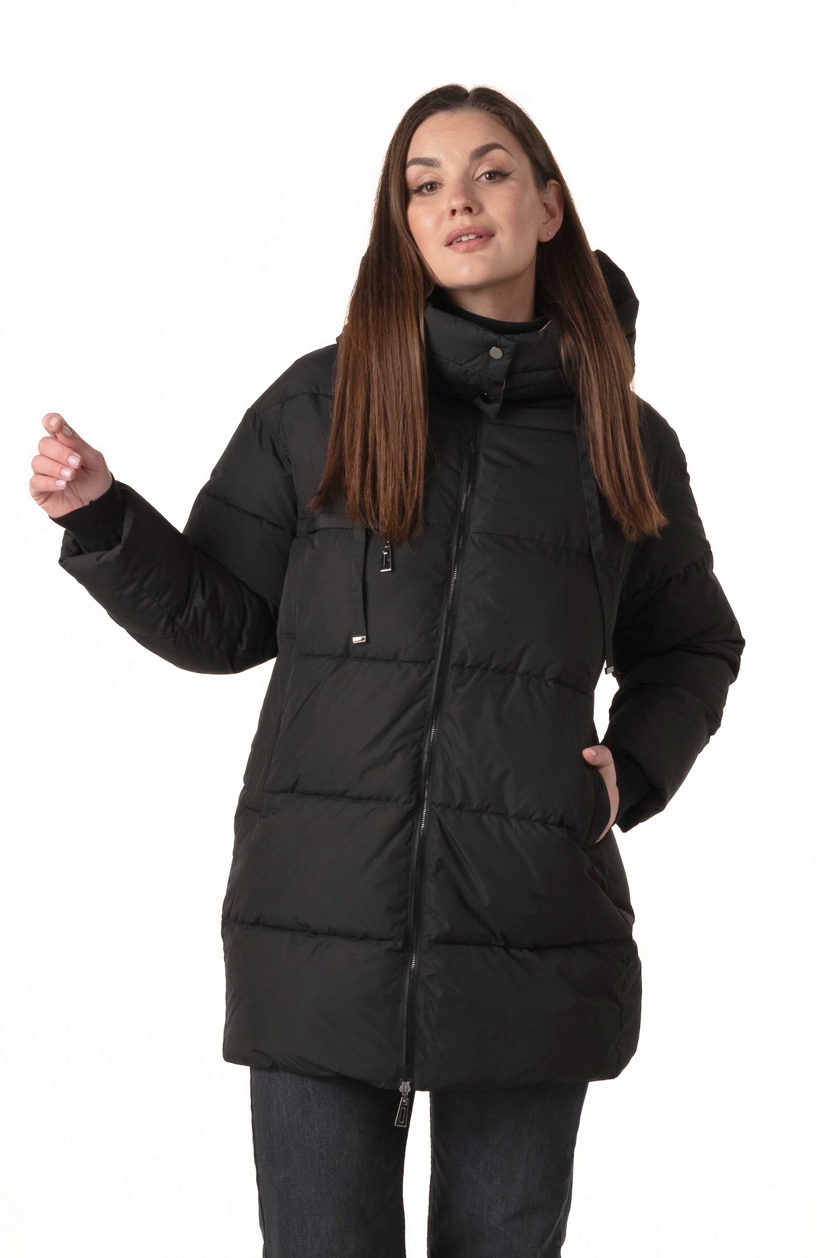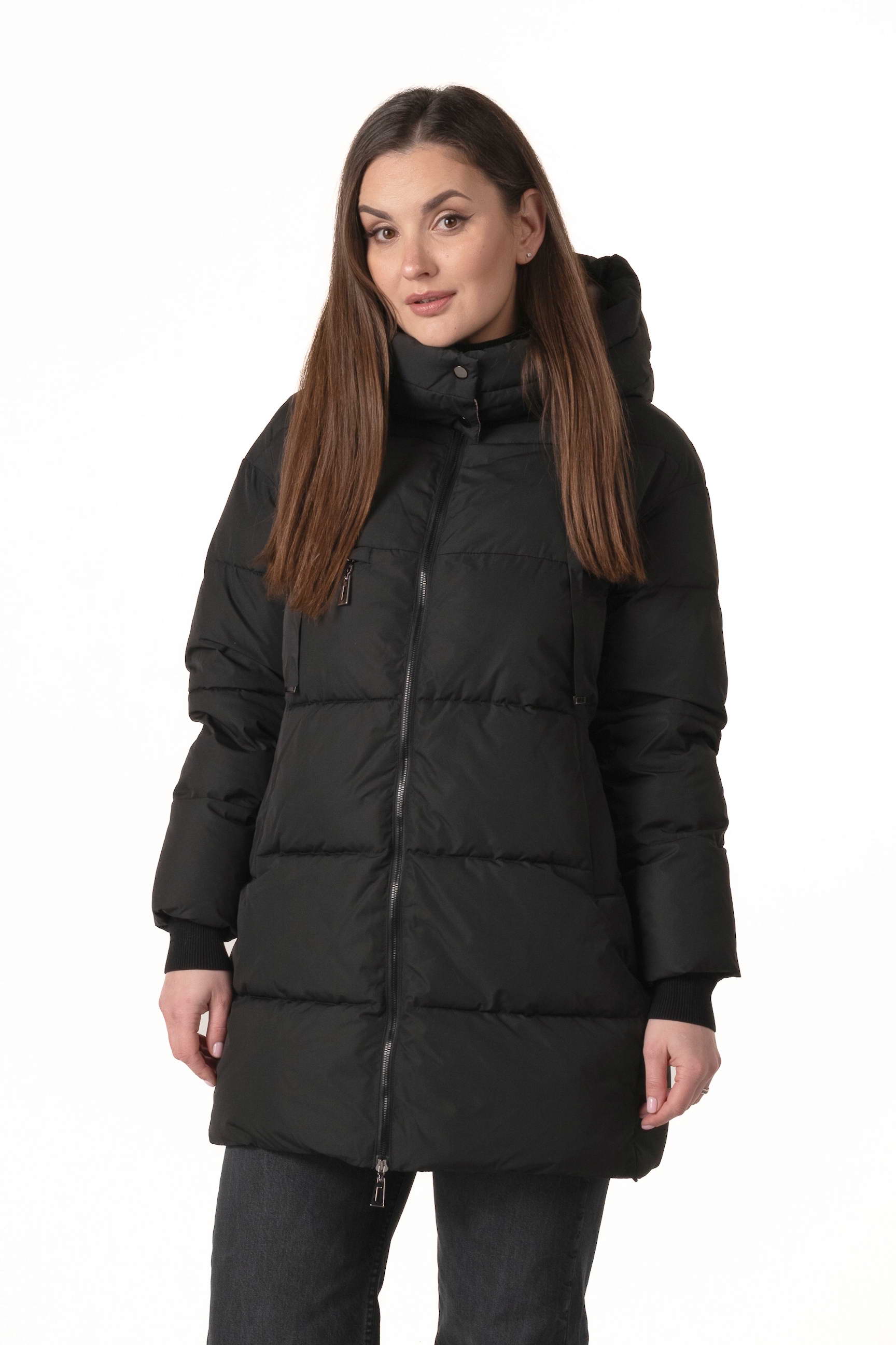 Прямий крій формує акуратний, універсальний силует, не обмежує рухів і дозволяє поєднувати пуховик із багатошаровими зимовими образами.