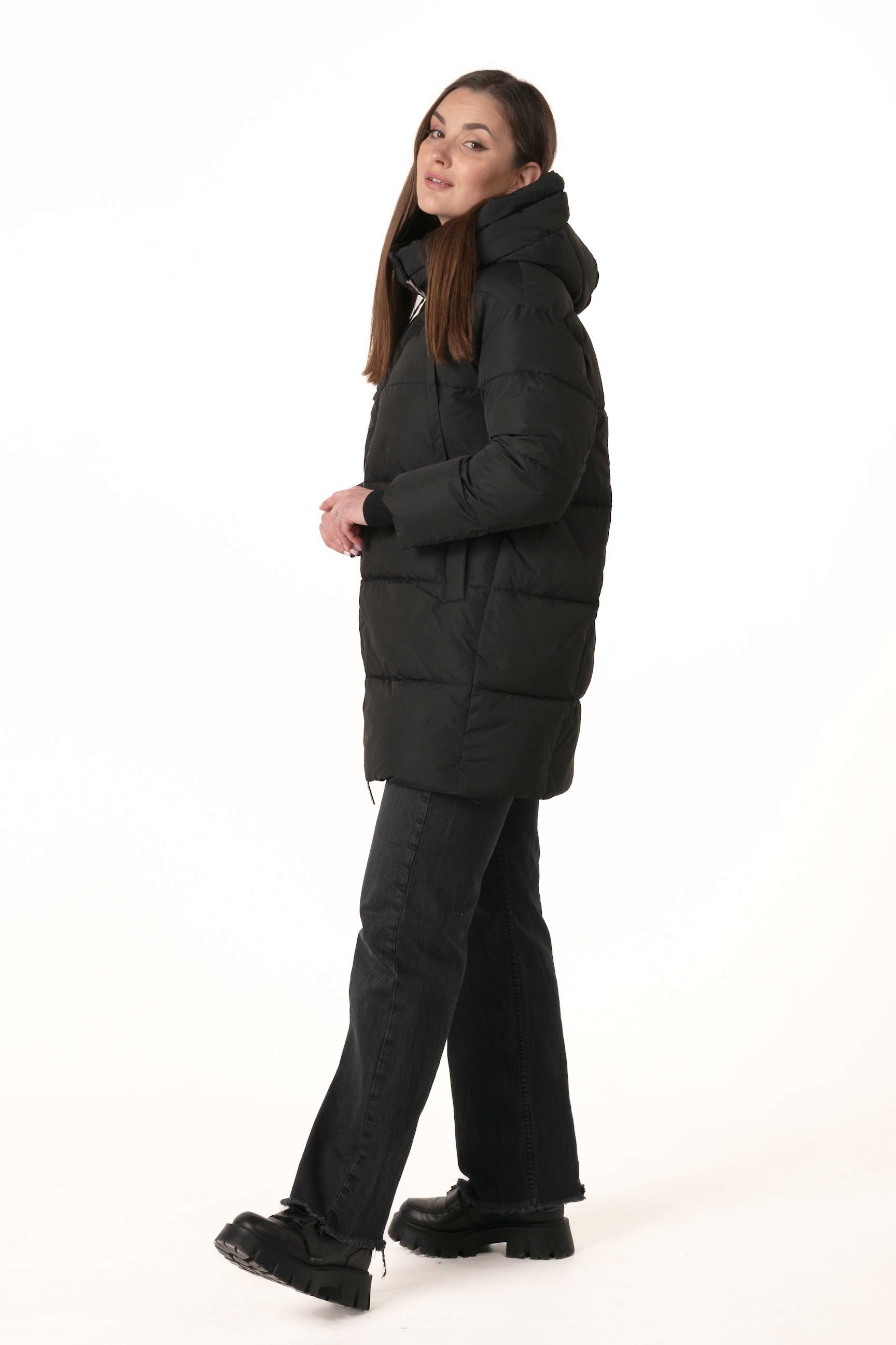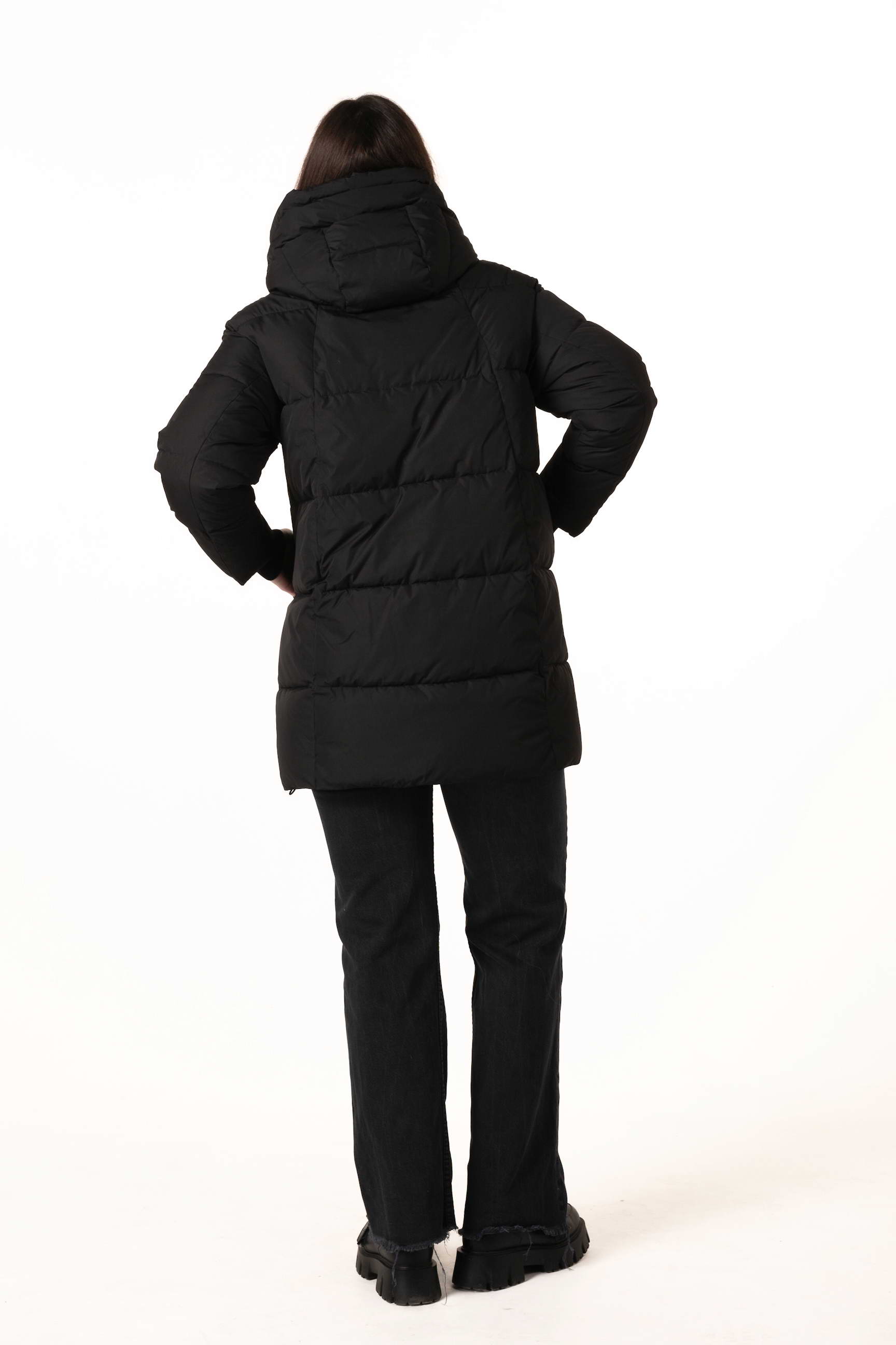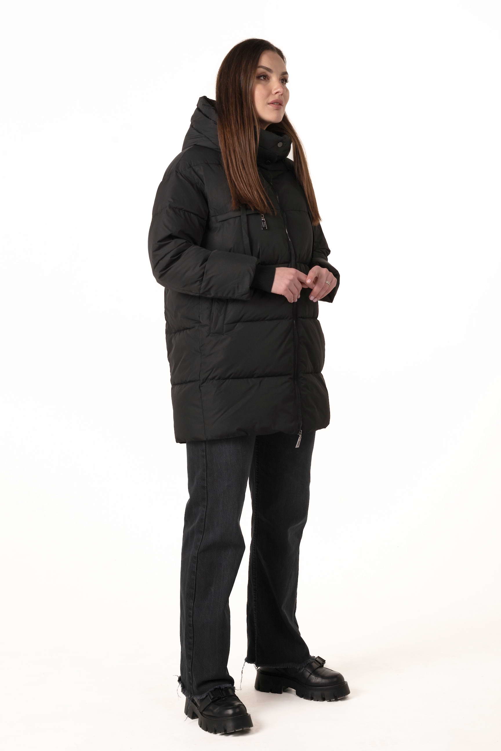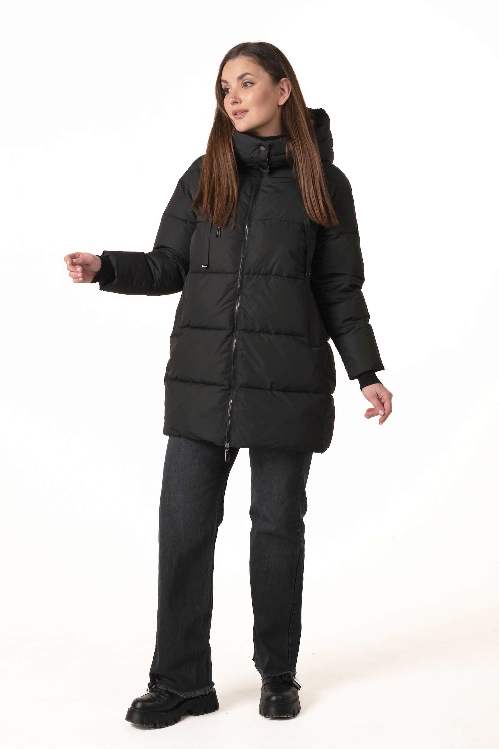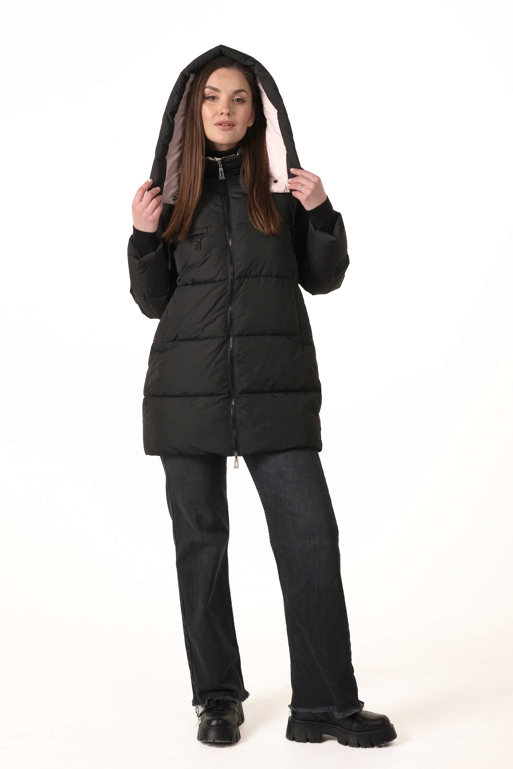 Прямий крій формує акуратний, універсальний силует, не обмежує рухів і дозволяє поєднувати пуховик із багатошаровими зимовими образами.
