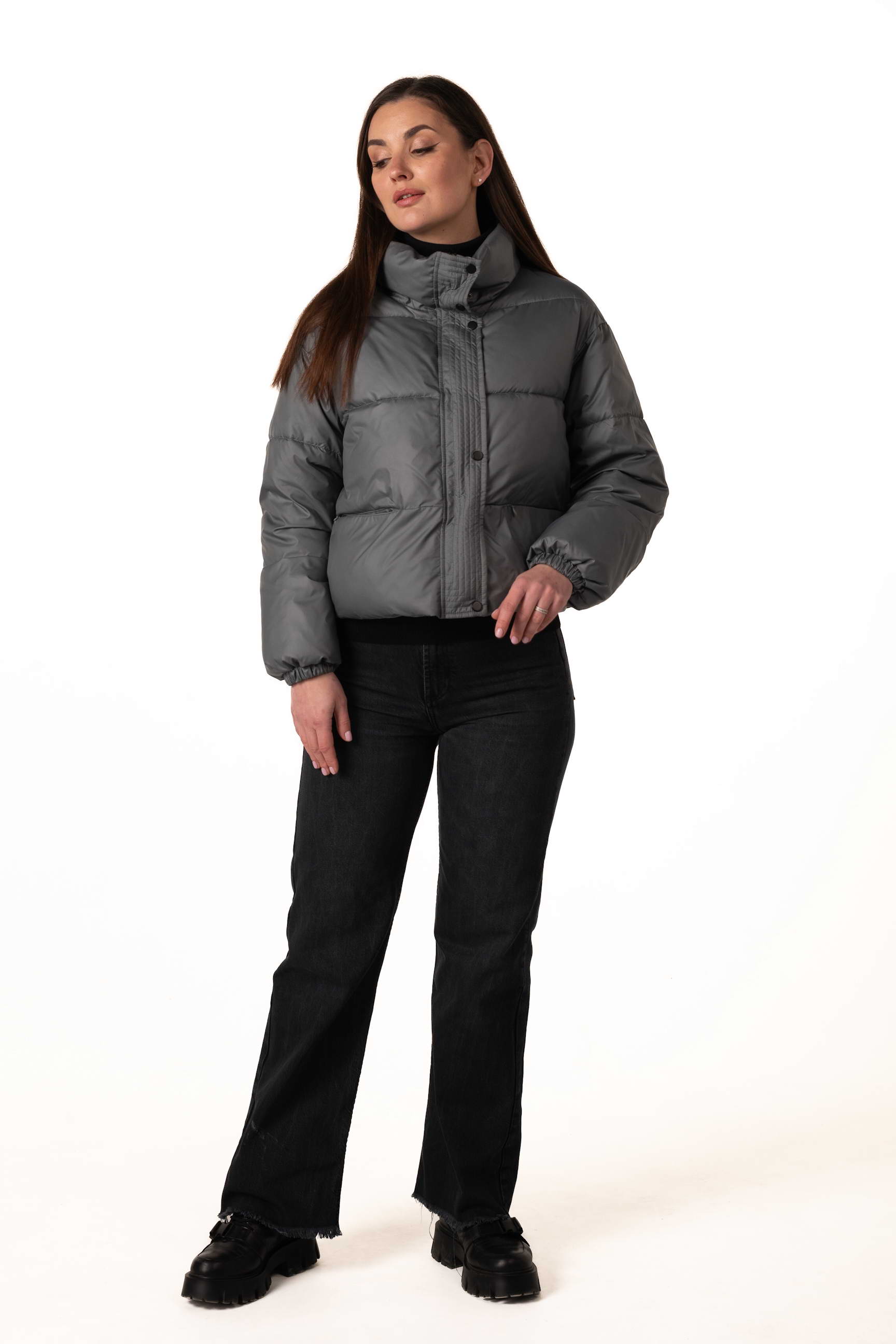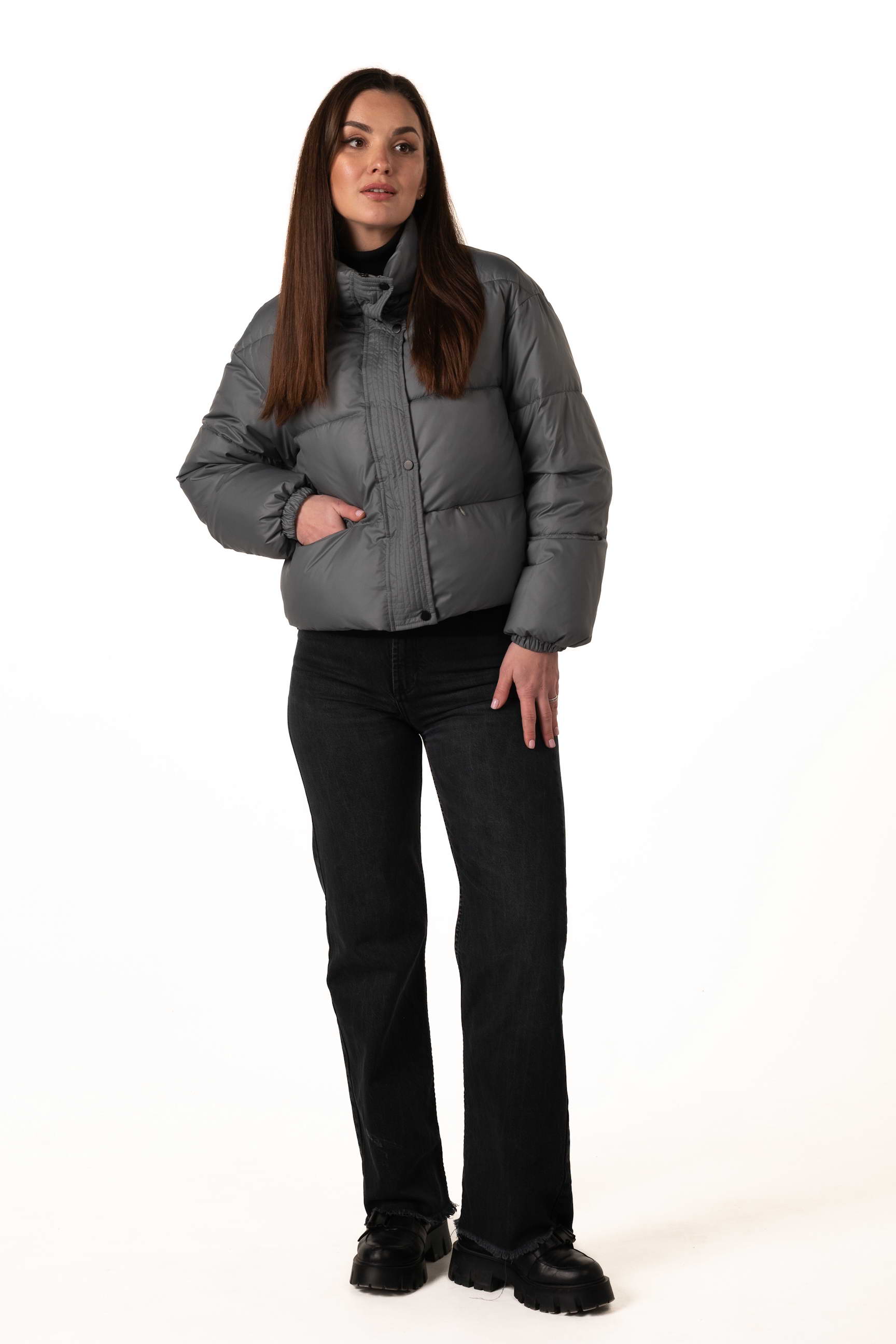Прямий крій створює рівний силует, не обмежує рухів і дозволяє поєднувати пуховик з багатошаровими образами для максимального комфорту.