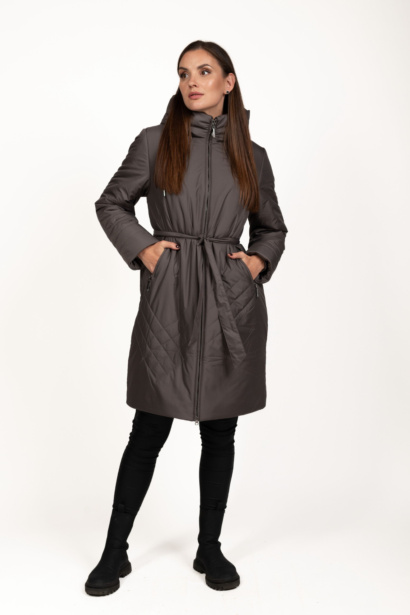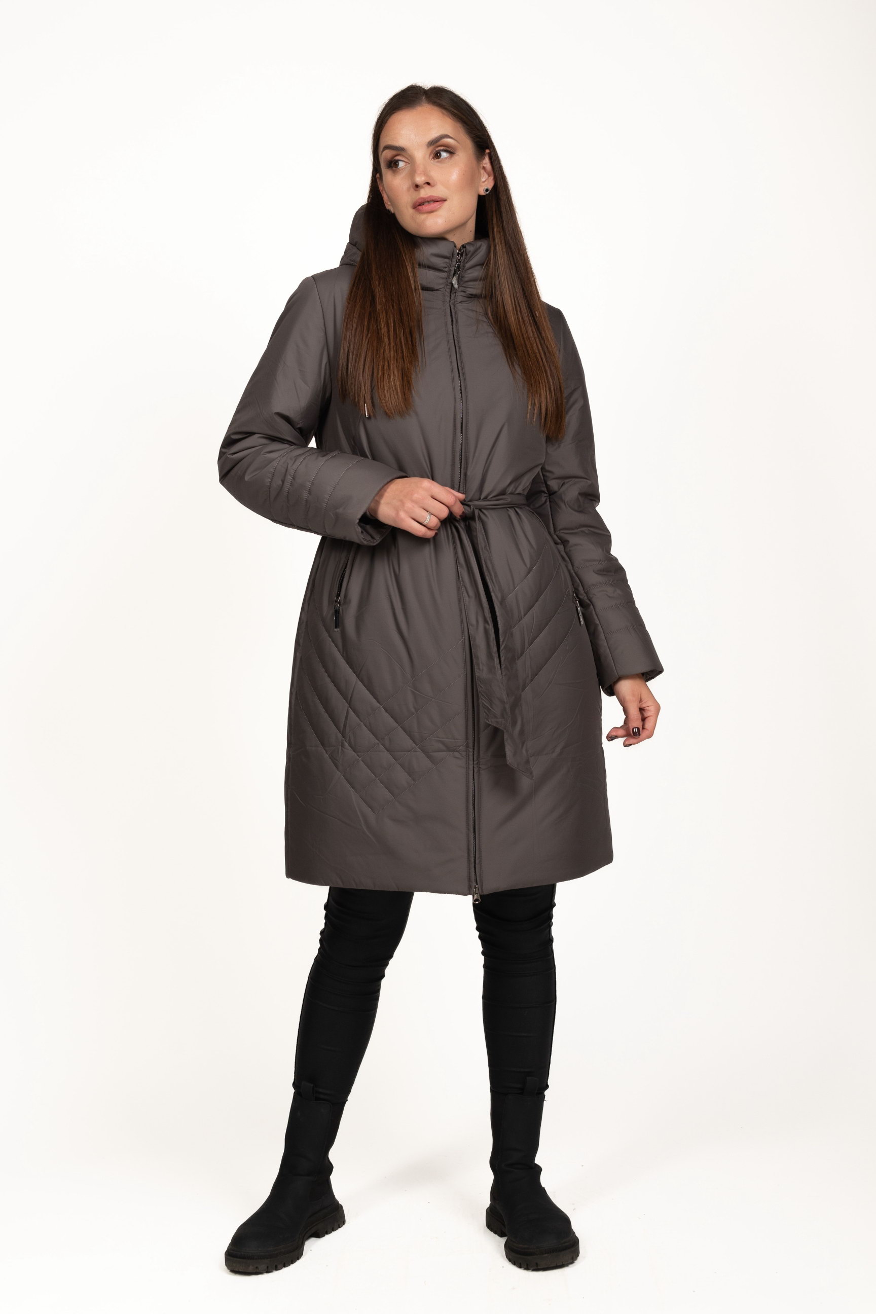 Блискавка та пояс — практичне поєднання, яке дозволяє регулювати посадку куртки по фігурі, підкреслюючи талію та формуючи жіночний силует.